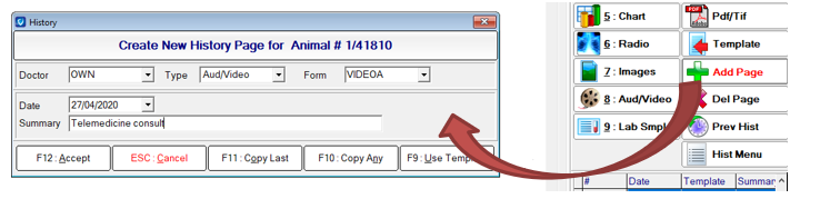 - In VetlinkPro use the Add Page or Attach Files options in clinical history to find and attach the file.