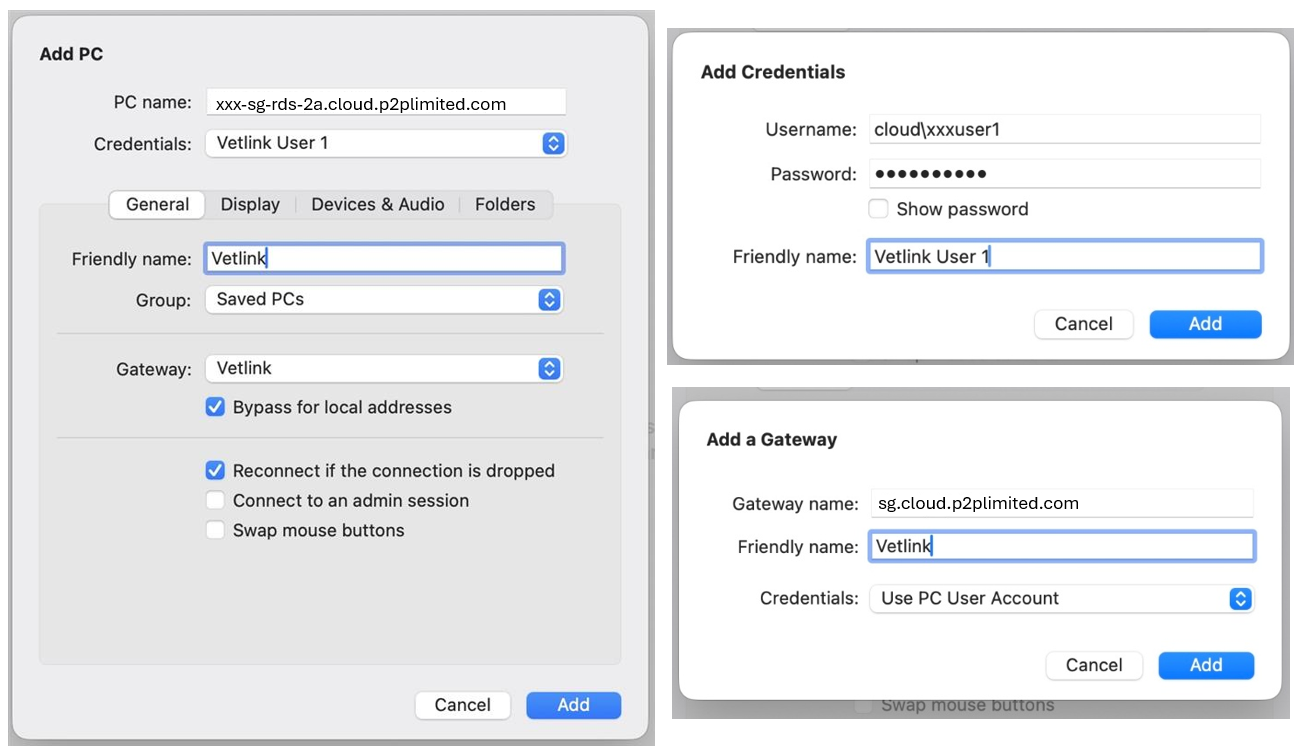 APPLE MAC GATEWAY SETUP Download and install Windows App from the App Store. Click on the “+” button at the top right of the screen. Select Add PC Enter Details as below; PC Name enter: xxx-rds-2a.cloud.p2plimited.com Credentials > Add Credentials... ...