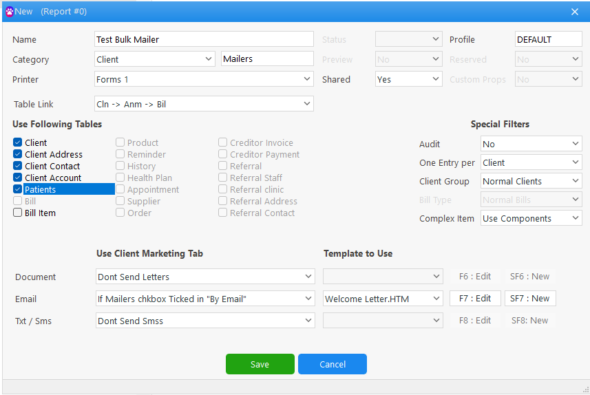 - If Mailers chkbox ticked - this is set in the Marketing tab on a clients file, if they opt out of these communications, they would not receive this mailer